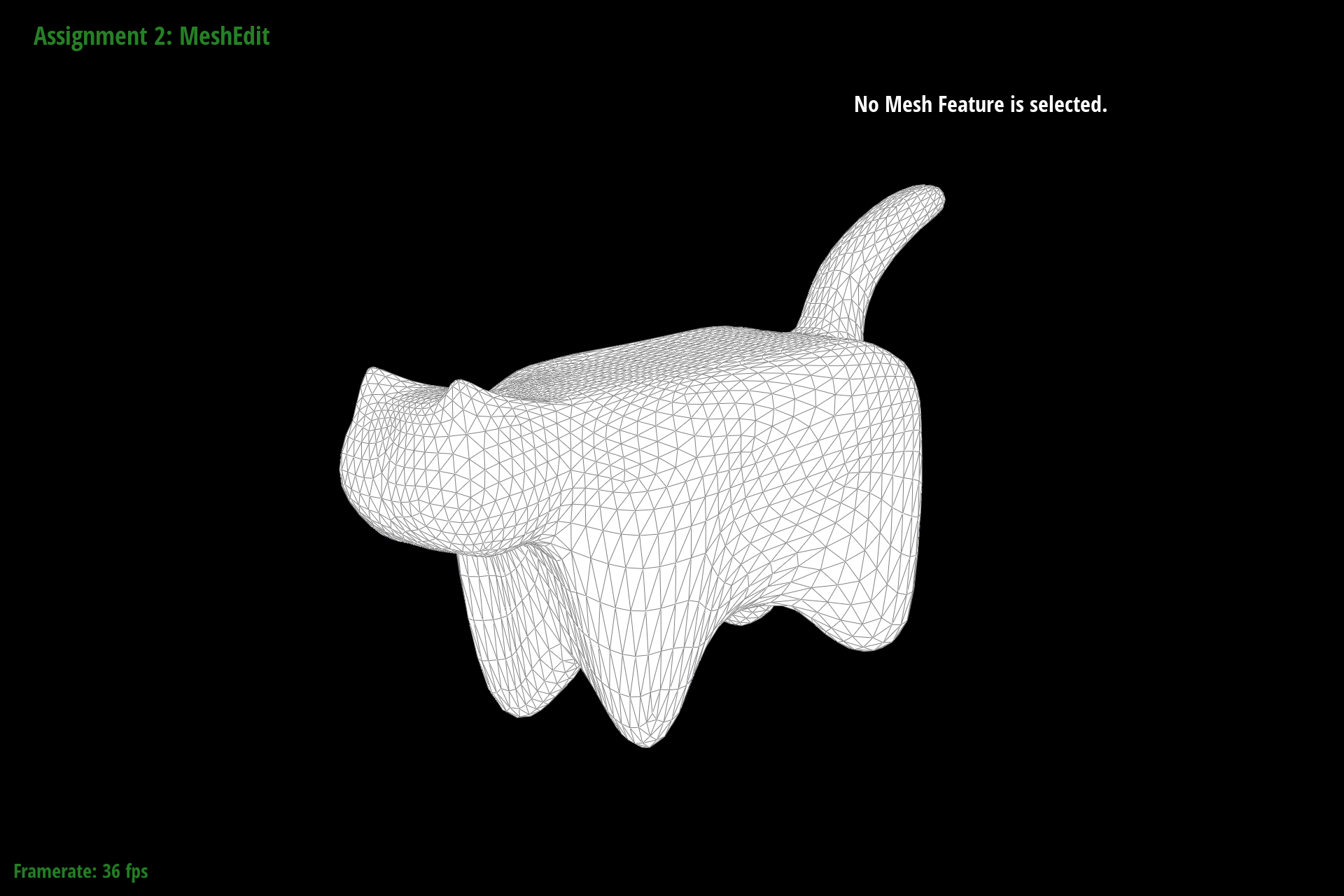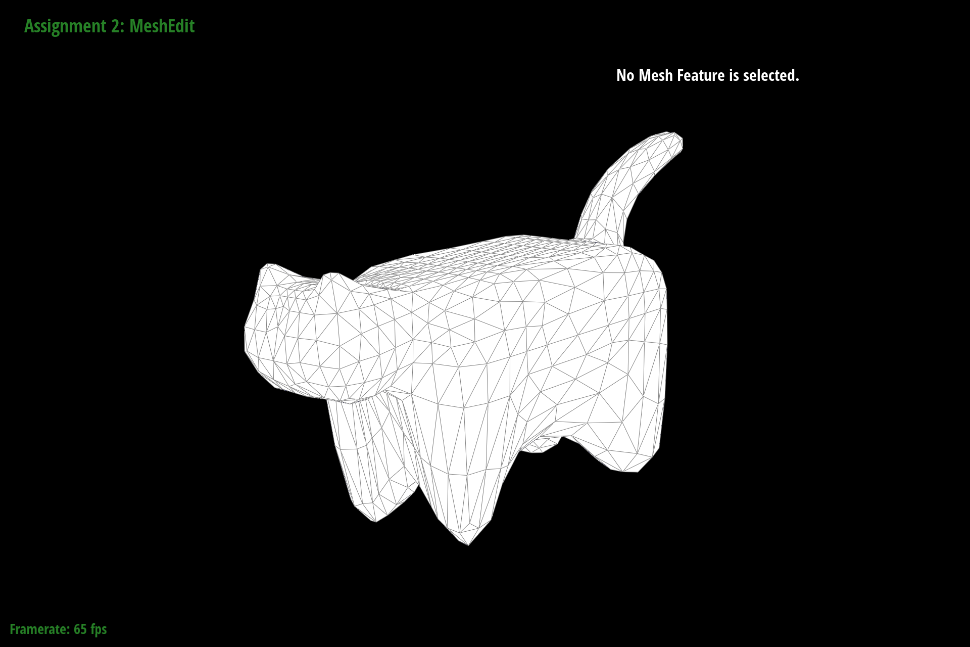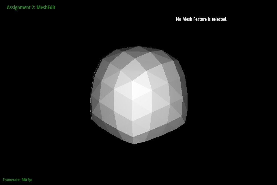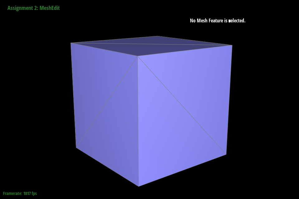 In debugging, we primarily relied on viewing the mesh in the GUI and selecting different components. By noting the address and comparing it to other objects, we could see where pointers were being assigned and if they were being assigned correctly. As a trick to make debugging faster, we truncated addresses to the last 4 digits since most components around a mesh seemed to be unique in that address space. Originally we tried with 3, but that led to some components being mistaken for each other that were in fact distinct in the fourth digit. We also ended up using temporary variables to store all halfedges, twinned halfedges, faces, edges, and vertices following my naming format outlined above. This saved debugging time by making it significantly easier to spot neighbor assignment issues just from looking at variable names.